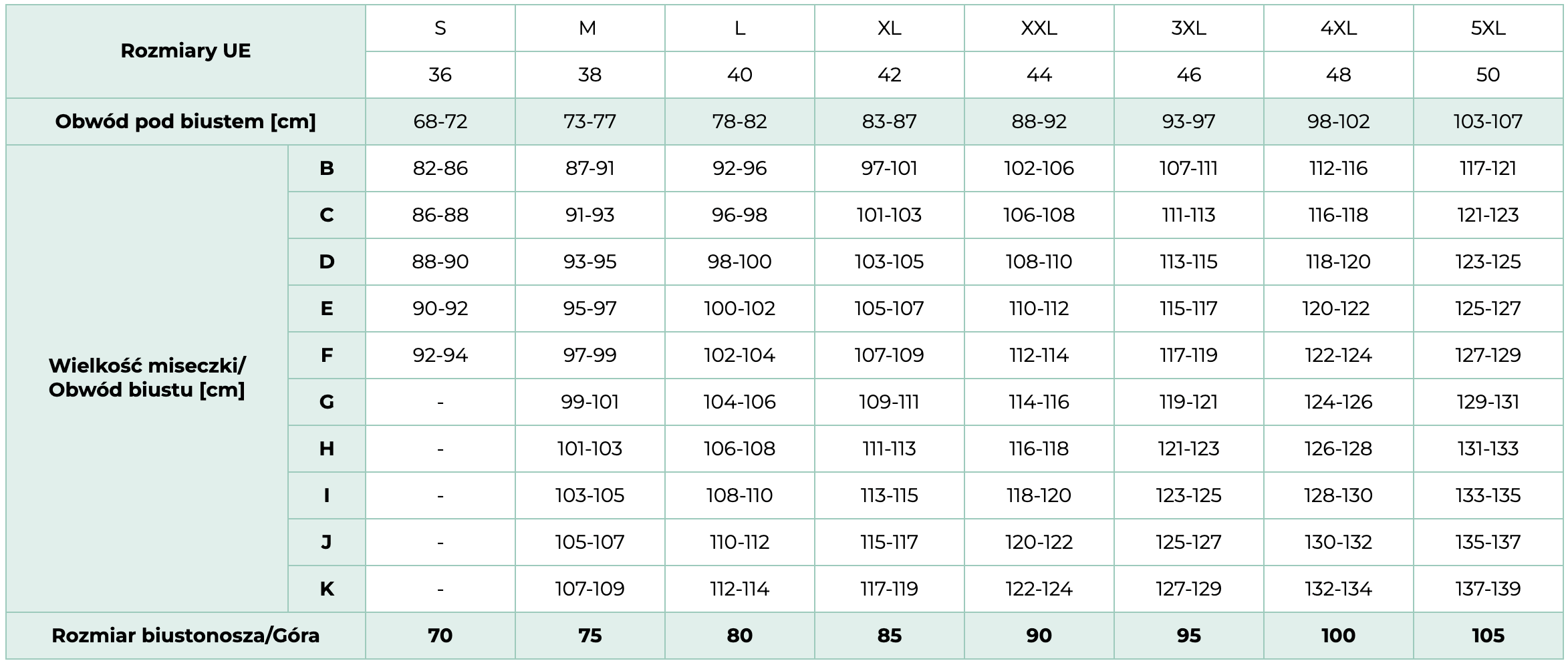 Tabela rozmiarów usztywnianych strojów kąpielowych